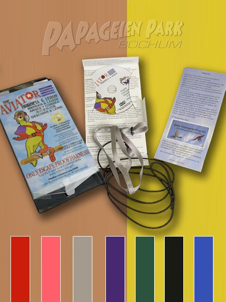 Hinweis: nutzen Sie den Aviator nur, wenn Sie wirklich sicher sind, die passende Größe und Farbe gewählt und sicher angelegt zu haben. Suchen Sie Rat bei erfahrenen Ausbildern und nehmen Sie an Workshops zum Papageienflugtraining teil!
